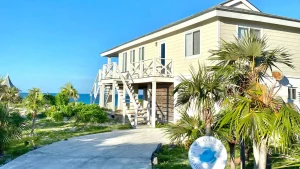 Arabella’s Cove is a serene two-bedroom, and two-bathroom retreat, specially designed for your comfort. Located just 45 minutes away from Miami, Great Harbour Cay is one of the best places in The Bahamas. It’s built with high vaulted ceilings and an airy, open living space that feels like home from the moment you walk in. Whether you’re lounging on the couches in the family room or sharing a meal around the dining table set for six, every corner invites you to relax and reconnect.