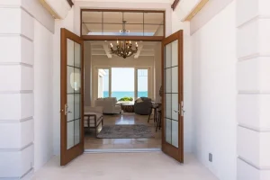 The 10? high sliders seamlessly connect the indoors with the outdoors, allowing you to enjoy the soothing sound of waves and the fresh sea breeze from the comfort of the living area. Step outside to the shell stone travertine patio, where you can bask in the sun, take a dip in the private pool, or indulge in a barbecue grill feast with your loved ones. The allure of the ocean is ever-present, reminding you of the paradise that surrounds you.