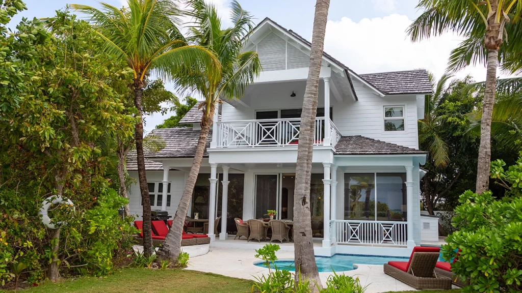 The White House features a stunning main house and an optional guest cottage, which makes it a perfect vacation rental for up to 10 guests. Hosting friends or bringing extended family to a Bahamian vacation? This vacation rental has three king ensuite bedrooms in the main house with additional king and twin ensuites in the guest cottage. So everyone has their privacy and a cozy family vibe.